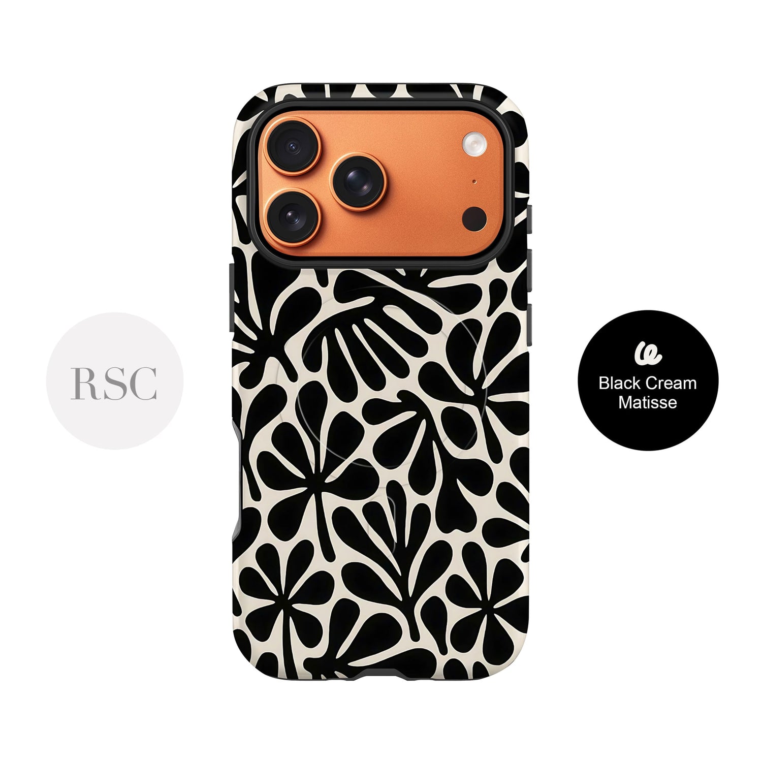 Protect your iPhone in style with our premium Magsafe iPhone case range, designed for iPhone 17, iPhone 16, iPhone 15, iPhone 14, and iPhone 13 models. Featuring an abstract black and cream matisse floral print and available in a matte or gloss finish to match your personal style.