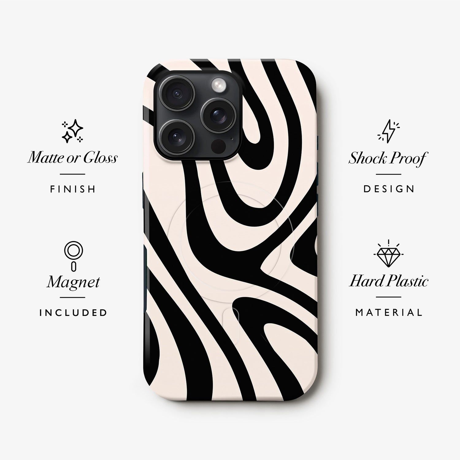 Protect your iPhone in style with our premium Magsafe iPhone case range, designed for iPhone 17, iPhone 16, iPhone 15, iPhone 14, and iPhone 13 models. Featuring our retro black and cream swirl print and available in a matte or gloss finish to match your personal style.