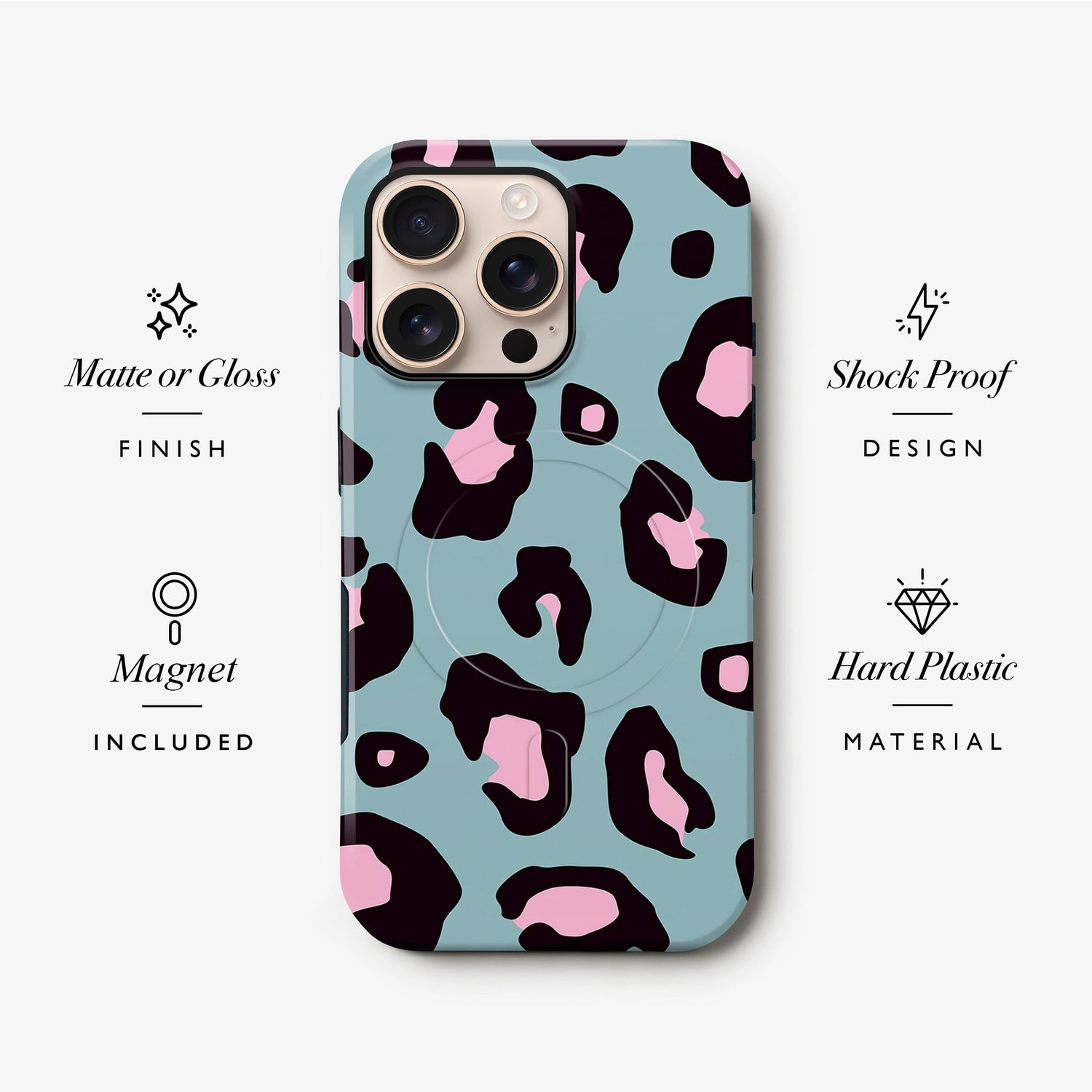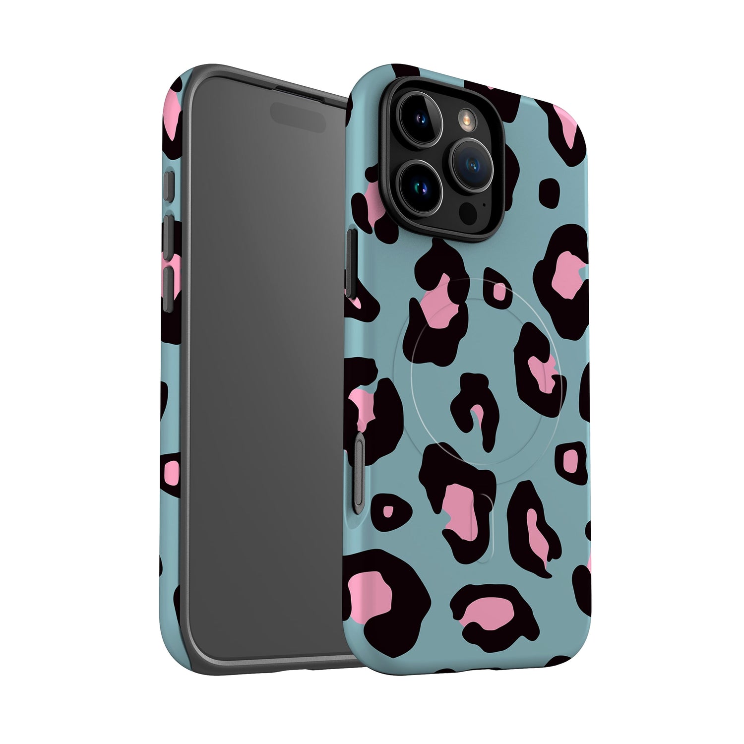 Protect your iPhone in style with our premium Magsafe iPhone case range, designed for iPhone 17, iPhone 16, iPhone 15, iPhone 14, and iPhone 13 models. Featuring a blue and baby pink leopard print design and available in a matte or gloss finish to match your personal style.