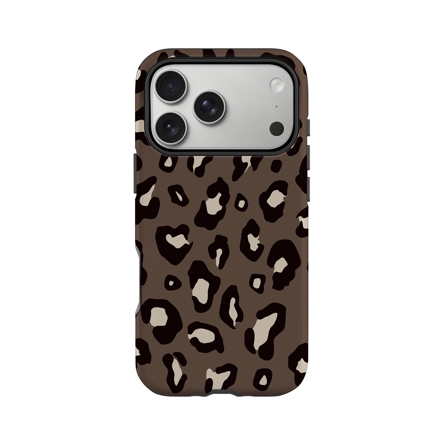 A modern leopard print case in muted brown and cream colour tones. A premium phone case for iPhone 17 and Samsung S25 devices as well as all other iPhone and Samsung Galaxy models listed. Choose from a matte or gloss finish and slim or tough case styles. Independently designed and exclusive to our store.
