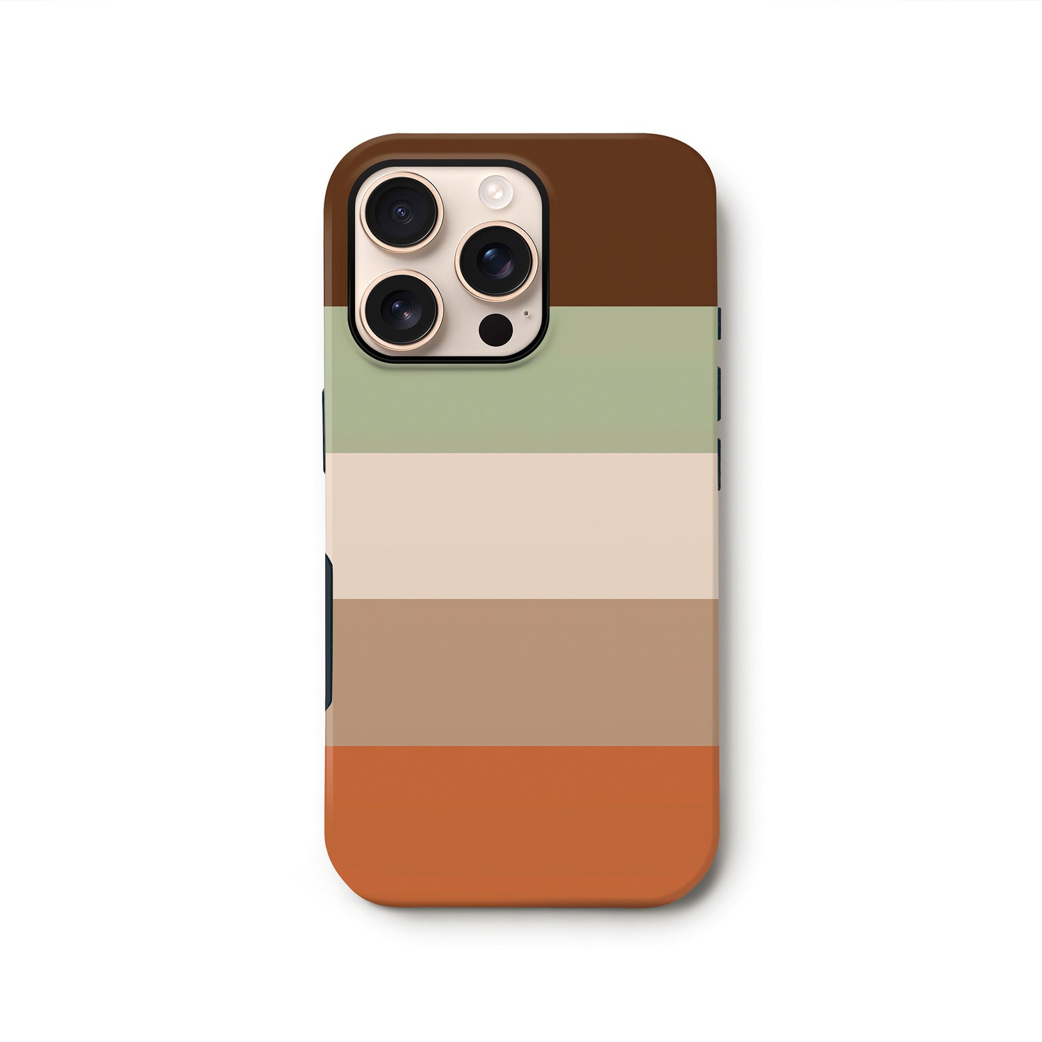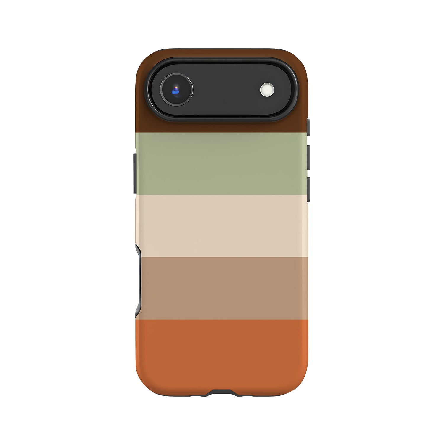 A modern stripe print case in brown and orange colour tones. A premium phone case for iPhone 17 and Samsung S25 devices as well as all other iPhone and Samsung Galaxy models listed. Choose from a matte or gloss finish and slim or tough case styles. Independently designed and exclusive to our store.
