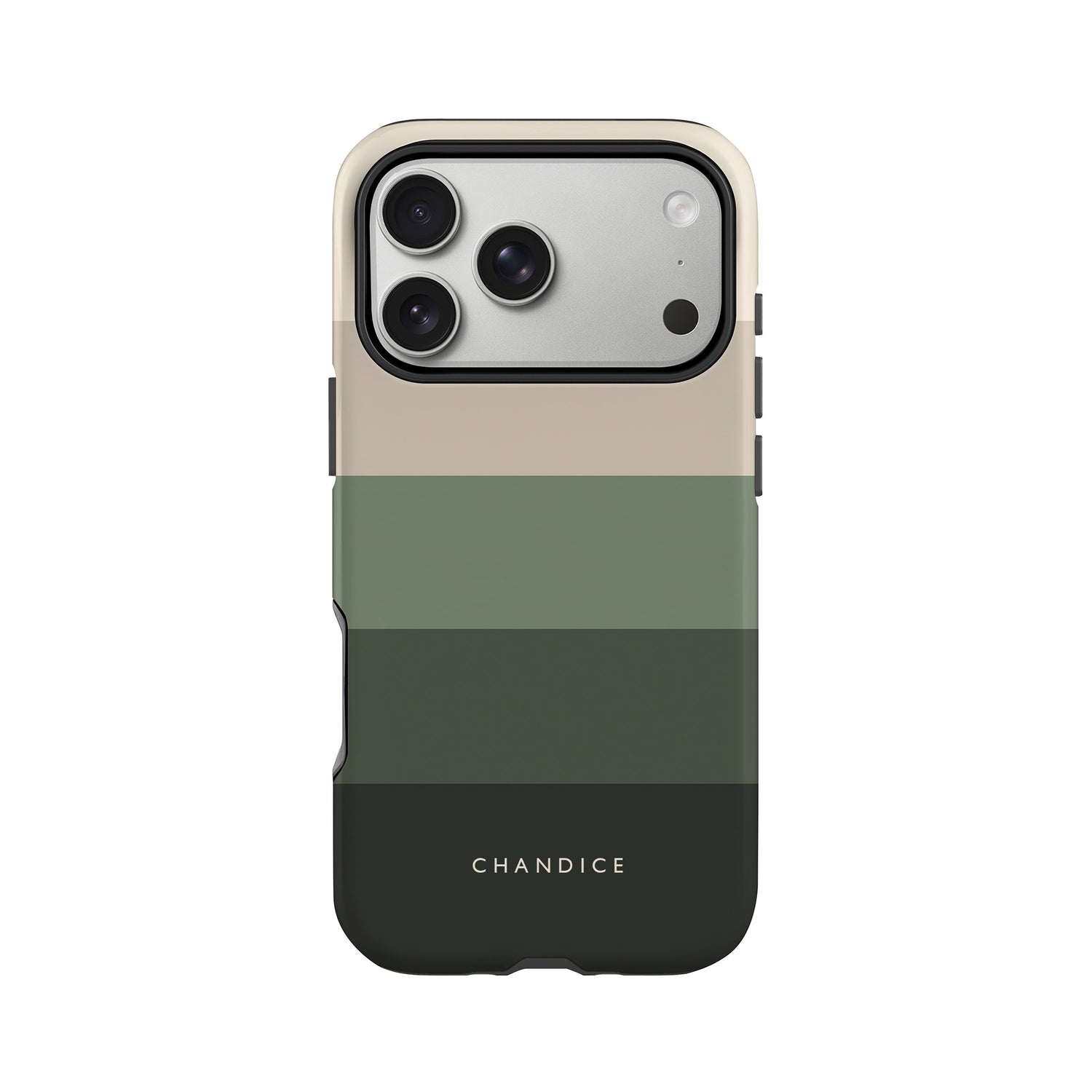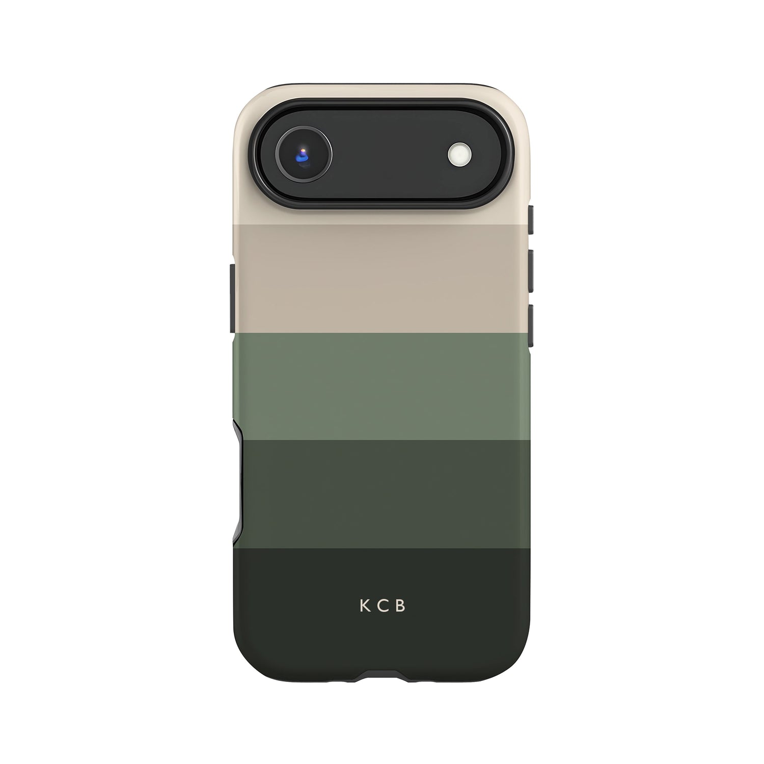 A modern stripe print case in earthy green and creams. Personalise with a name of your choice or go with just the stripes. A premium phone case for iPhone 17 and Samsung S25 devices as well as all other iPhone and Samsung Galaxy models listed. Choose from a matte or gloss finish and slim or tough case styles. Independently designed and exclusive to our store.