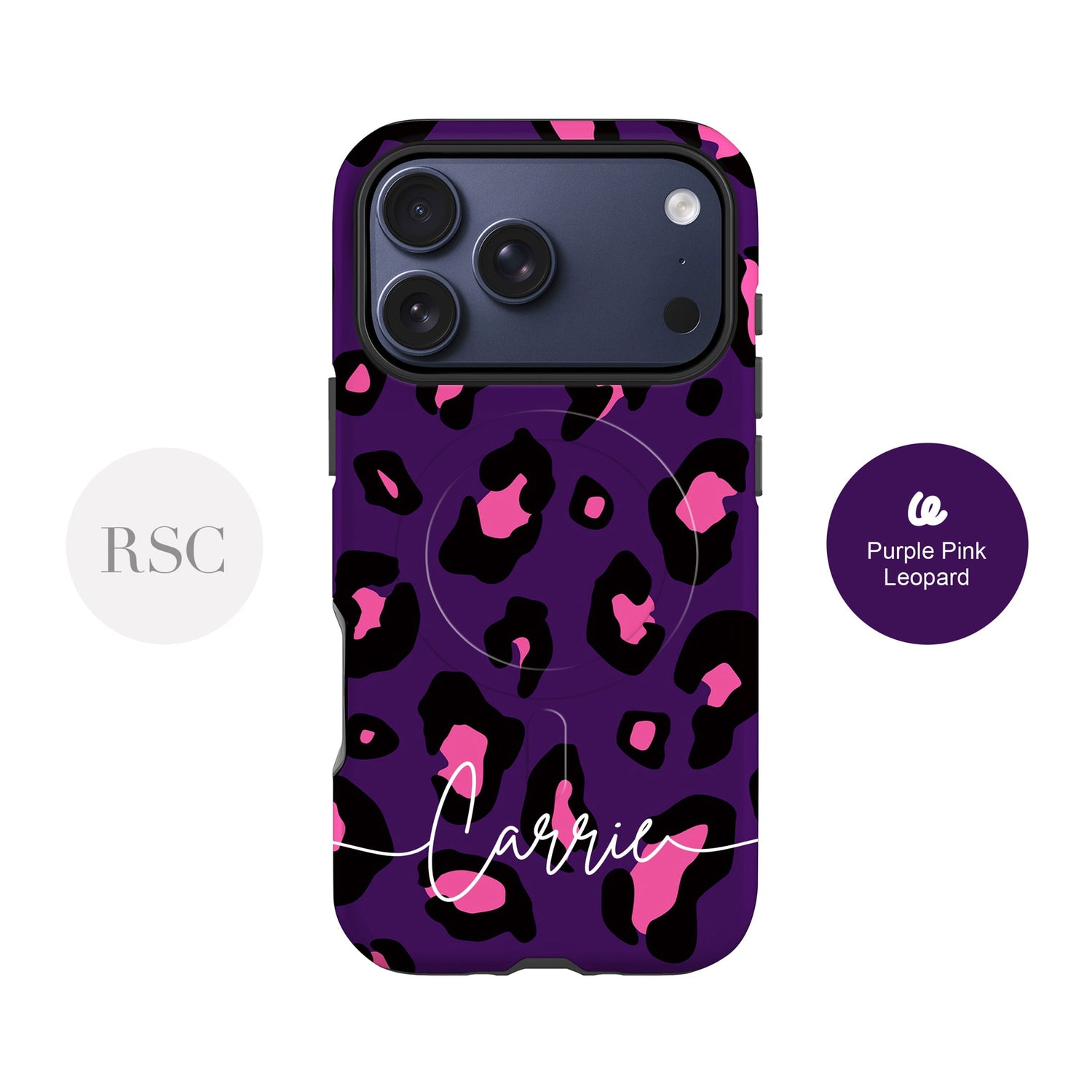 Protect your iPhone in style with our premium Magsafe iPhone case range, designed for iPhone 17, iPhone 16, iPhone 15, iPhone 14, and iPhone 13 models. Featuring a dark purple and pink leopard print design and available in a matte or gloss finish to match your personal style.