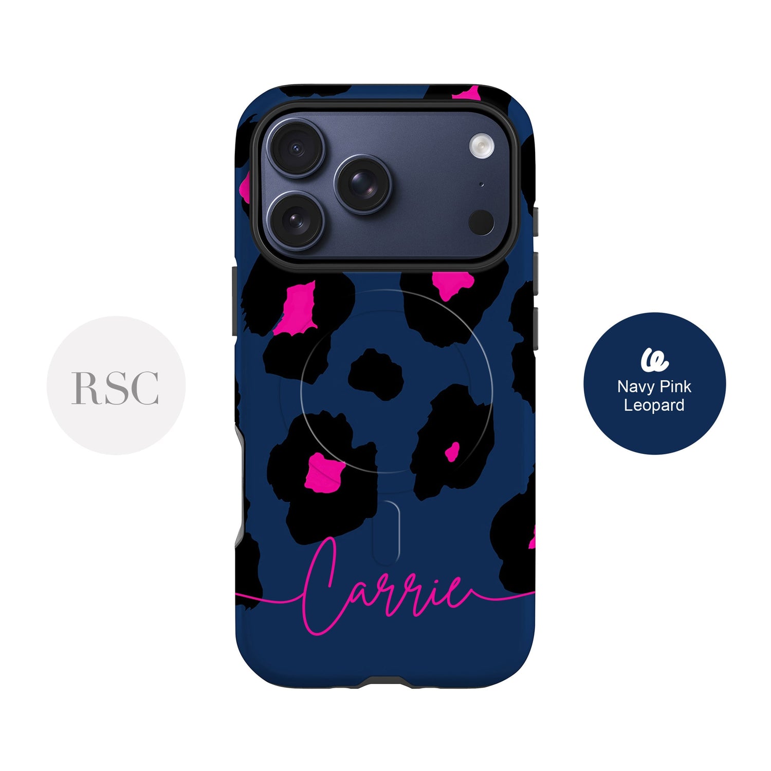 Protect your iPhone in style with our premium Magsafe iPhone case range, designed for iPhone 17, iPhone 16, iPhone 15, iPhone 14, and iPhone 13 models. Featuring our navy blue and pink leopard print and available in a matte or gloss finish to match your personal style.